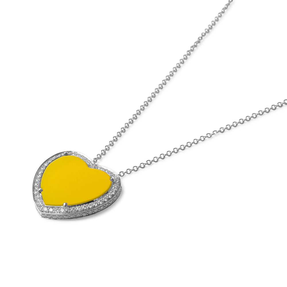 The Amore collection is a sincere tribute to love, it embodies romance through its iconic heart shaped design. Each necklace is crafted to celebrate love in its purest form. The Amore necklace is set with natural diamonds and hand selected gemstones chosen for their spiritual beliefs.