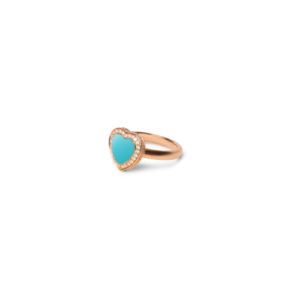 The Amore collection is a sincere tribute to love, it embodies romance through its iconic heart shaped design. Each ring is crafted to celebrate love in its purest form. The Amore ring is set with natural diamonds and hand selected gemstones chosen for their spiritual beliefs.
