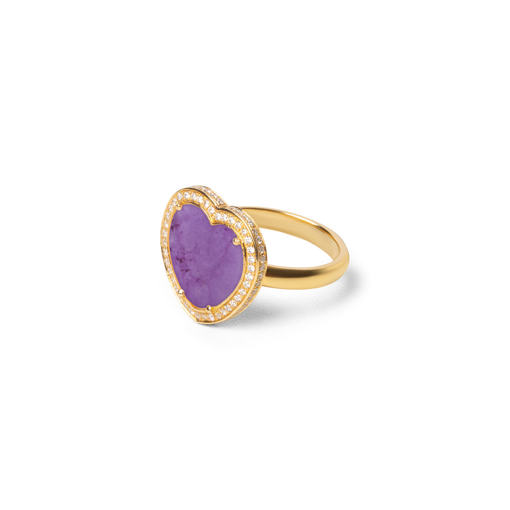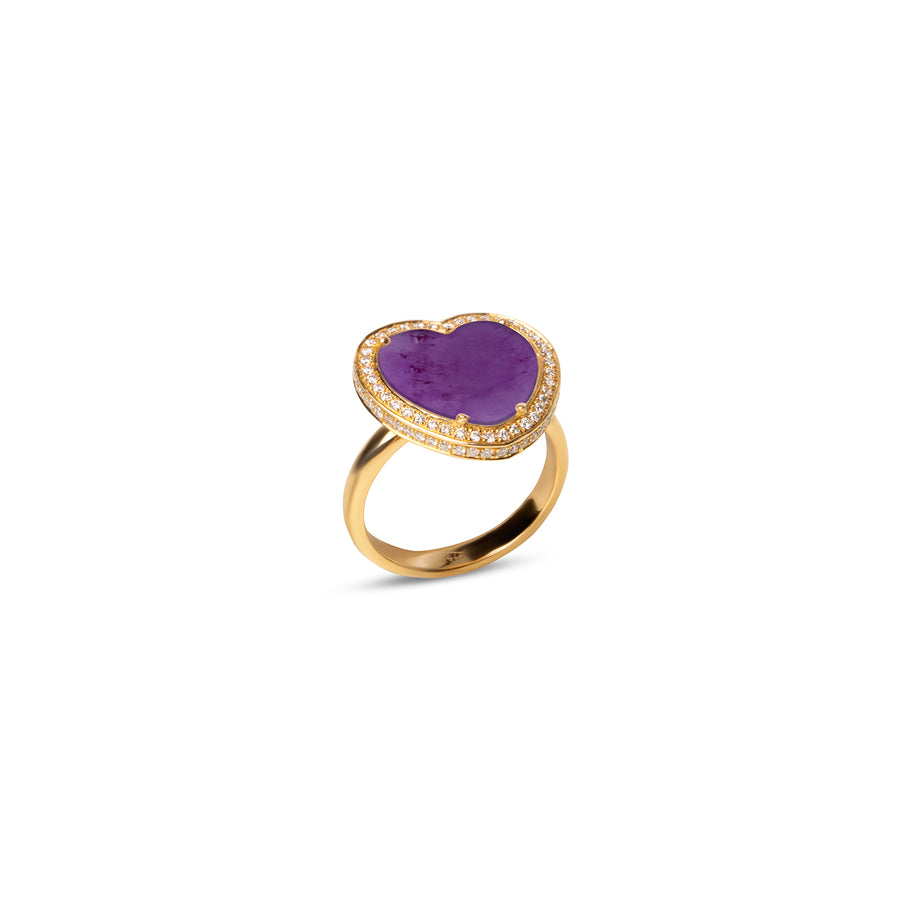 The Amore collection is a sincere tribute to love, it embodies romance through its iconic heart shaped design. Each ring is crafted to celebrate love in its purest form. The Amore ring is set with natural diamonds and hand selected gemstones chosen for their spiritual beliefs.