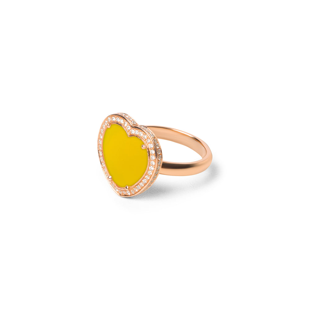The Amore collection is a sincere tribute to love, it embodies romance through its iconic heart shaped design. Each ring is crafted to celebrate love in its purest form. The Amore ring is set with natural diamonds and hand selected gemstones chosen for their spiritual beliefs.
