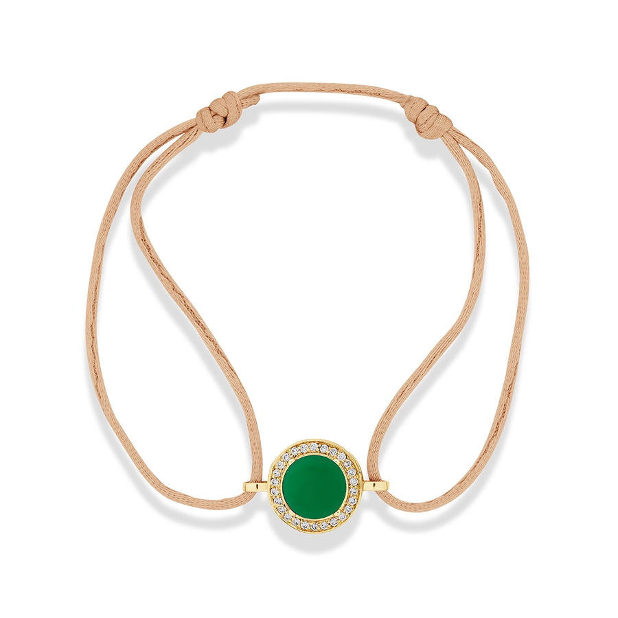 Eternity Bracelet Cord Green Agate Yellow Gold