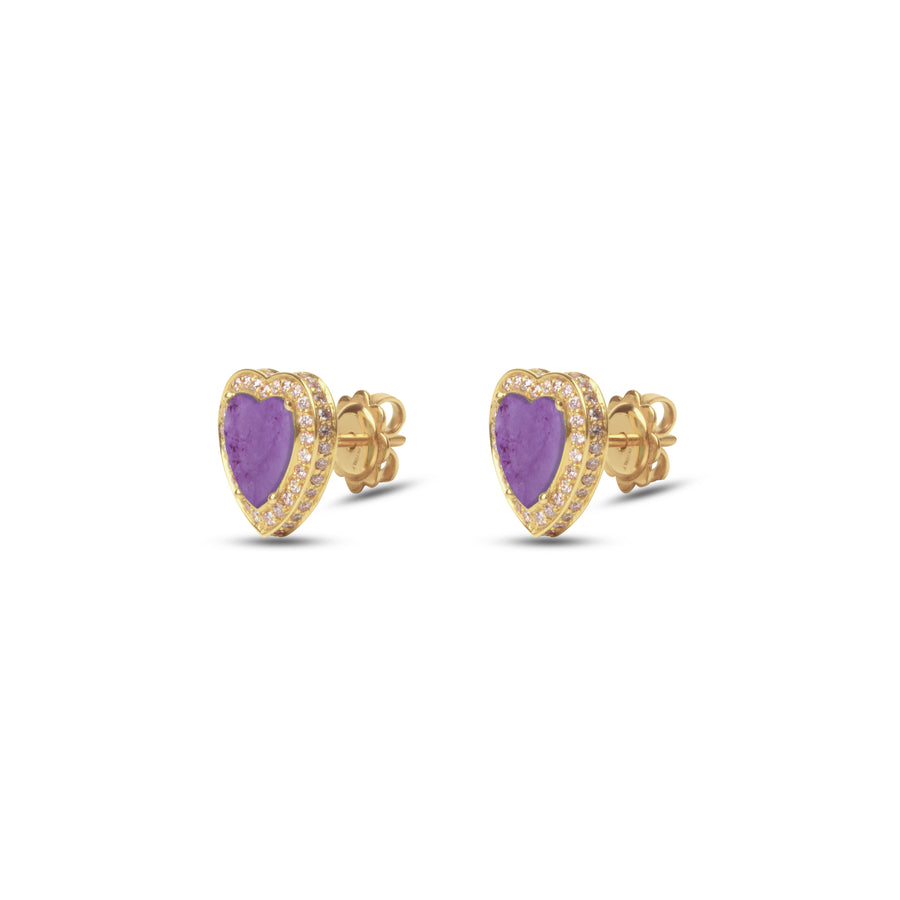 Amore Earrings Purple Agate Yellow Gold