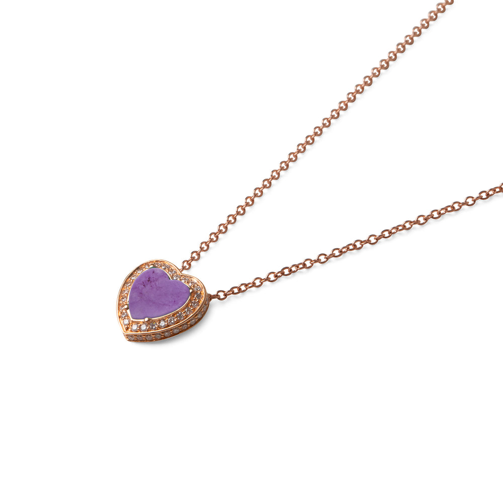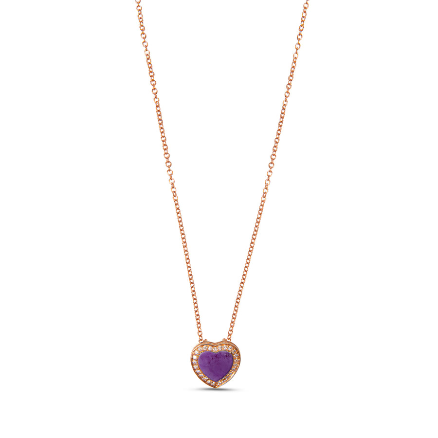 The Amore collection is a sincere tribute to love, it embodies romance through its iconic heart shaped design. Each necklace is crafted to celebrate love in its purest form. The Amore necklace is set with natural diamonds and hand selected gemstones chosen for their spiritual beliefs.