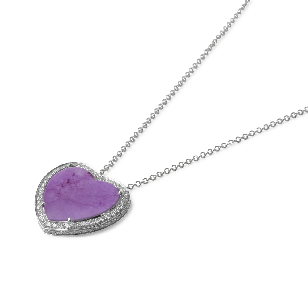 The Amore collection is a sincere tribute to love, it embodies romance through its iconic heart shaped design. Each necklace is crafted to celebrate love in its purest form. The Amore necklace is set with natural diamonds and hand selected gemstones chosen for their spiritual beliefs.