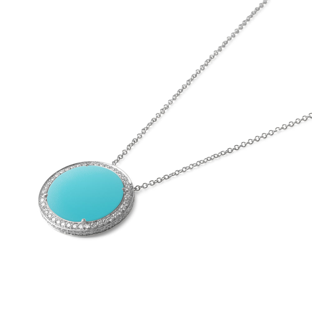 The name Eternity symbolizing the essence of timeless beauty and endless elegance, each necklace is crafted to represent concepts that endure forever.  The perfect round shapes in this collection symbolize the eternal cycle of life and love. The Eternity necklace is set with natural diamonds and hand selected gemstones chosen for their spiritual beliefs