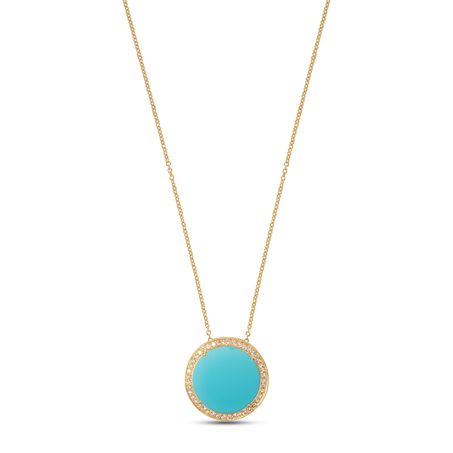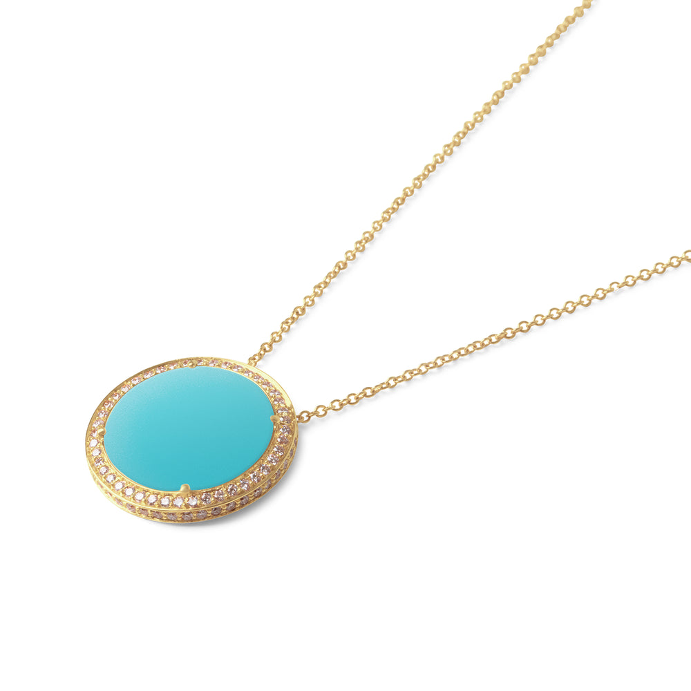 The name Eternity symbolizing the essence of timeless beauty and endless elegance, each necklace is crafted to represent concepts that endure forever.  The perfect round shapes in this collection symbolize the eternal cycle of life and love. The Eternity necklace is set with natural diamonds and hand selected gemstones chosen for their spiritual beliefs