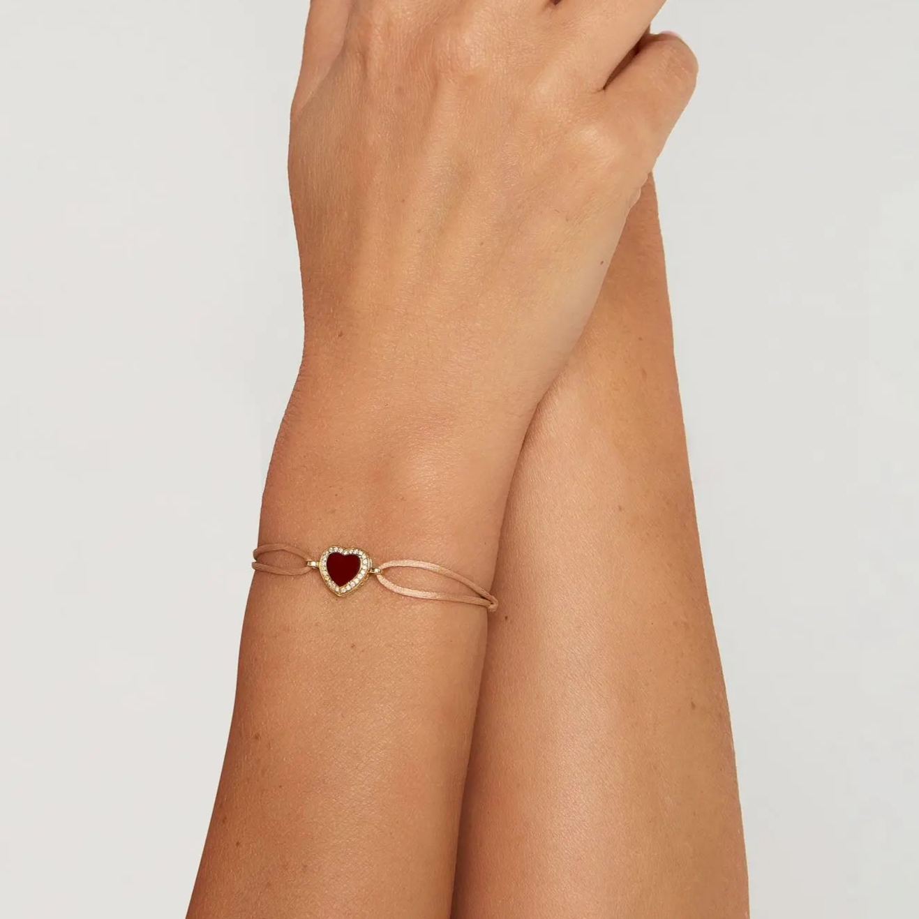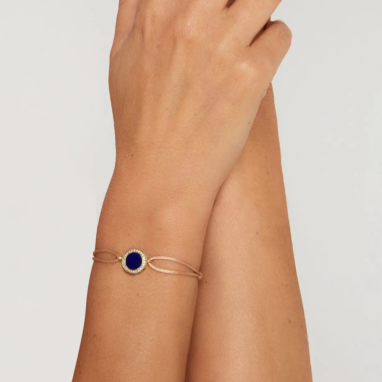 The Amore Silk Bracelet combines hand-knotted silk, 18k gold set with conflict-free natural diamonds, a timeless piece that adjusts to any wrist.